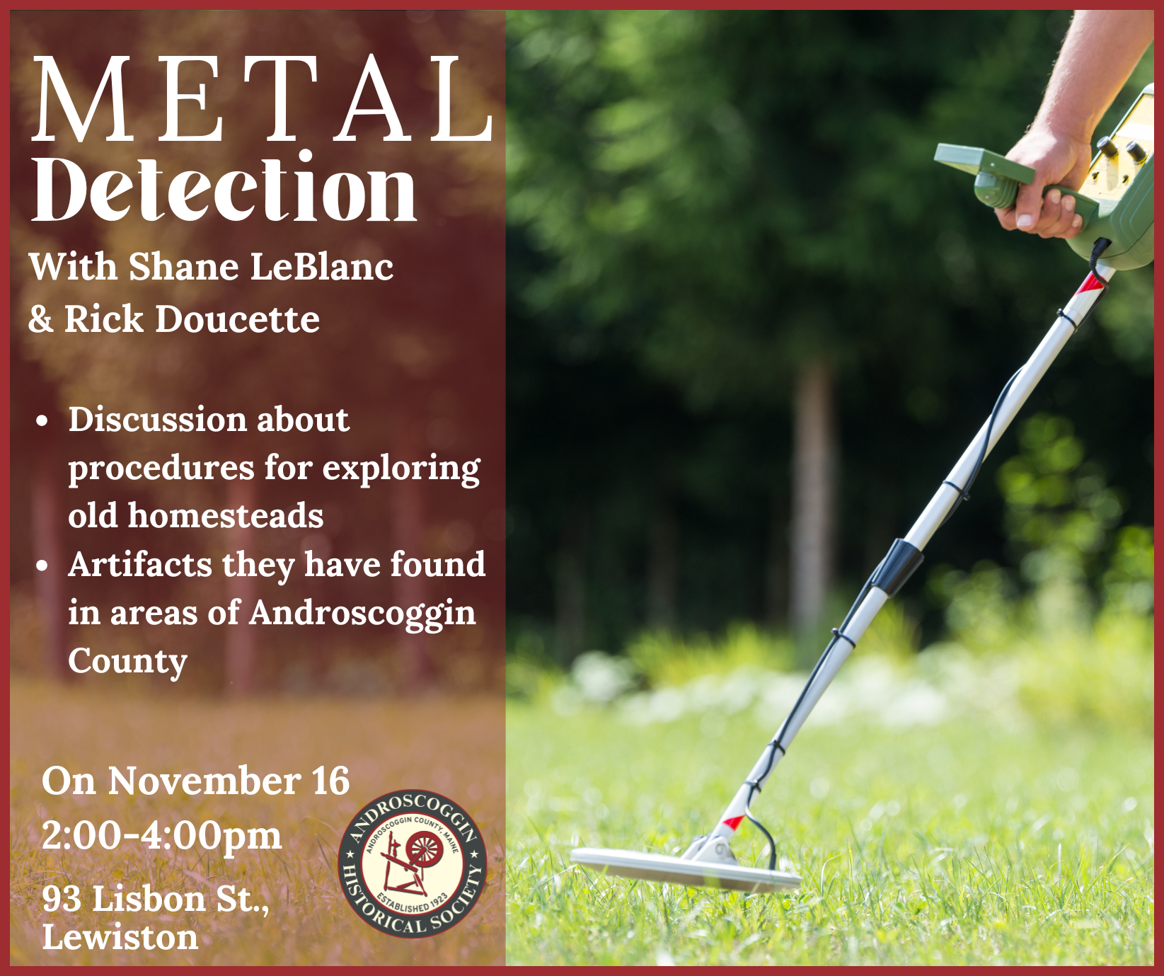 Join us for an information discussion about metal detection with Shane LeBlanc & Rick Doucette.